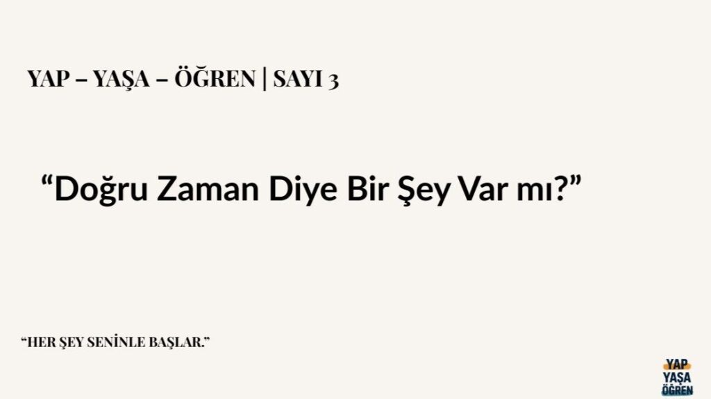 Ya doğru zaman, sandığımız gibi dışarıdan gelen bir şey değilse? Ya gerçekten zamanın doğrusu yoksa?