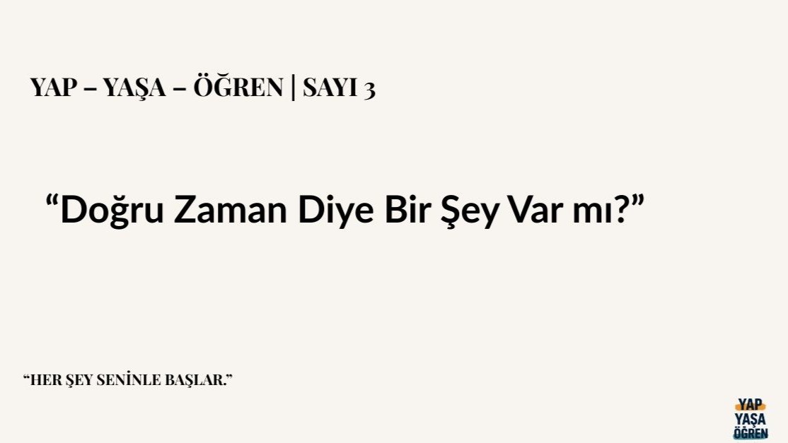 Deneyimsel öğrenme de tam olarak budur: Beklemek değil, denemek. Mükemmel zamanı değil, ilk adımı seçmek.